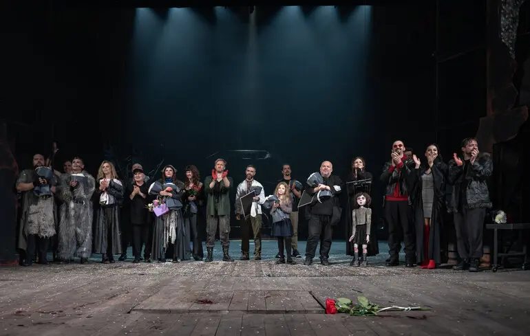 Furthermore, the collaboration between director Hollenk and scenographer Bilozub gave birth to a unique visual concept, blending stylish design with symbolic depth that reveals the core idea of the performance — a struggle with internal and external darkness of modern humanity.