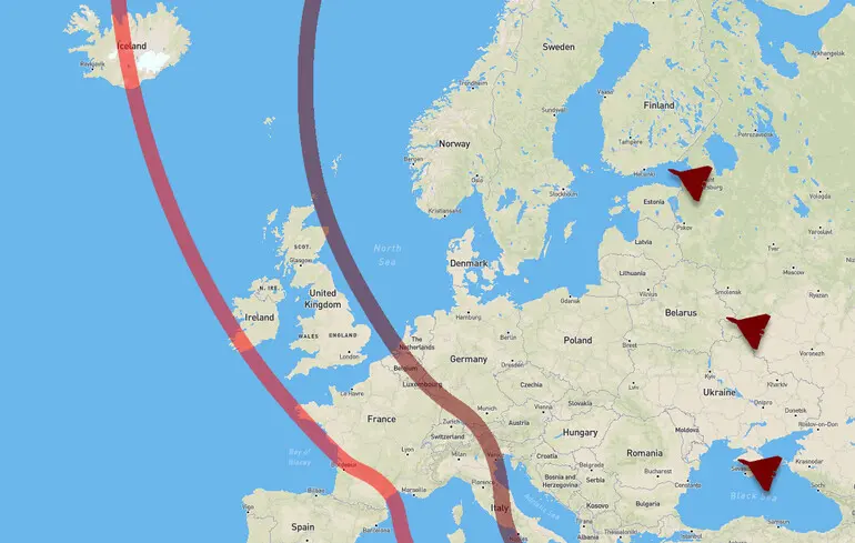 Залежно від дальності польоту — до 1800 та 2500 кілометрів — агресор здатен уражати практично всю Європу, включно з половиною Іспанії, а також майже всі столиці, окрім Лісабона.